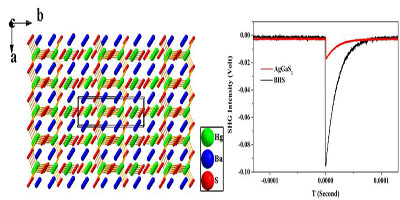BaHgS2晶体的结构图和粉末倍频效应图
