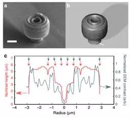 在如此小的长度尺度下,光表现为粒子和波,使具有亚波长特征的结构的设计复杂化,光学元件的性能极其有限。使用演化算法设计结构解决了这个问题,全波光学模拟完全决定纳米光子器件的几何形状。研究团队使用演化算法,设计并构建了性能改善的3D介质纳米光子透镜结构,如图1所示,借助于基于干涉的天线控制和透镜的宽带操作。这中3D纳米光子透镜的方向性值超过诸如球面透镜的经典结构的方向性值约三倍。