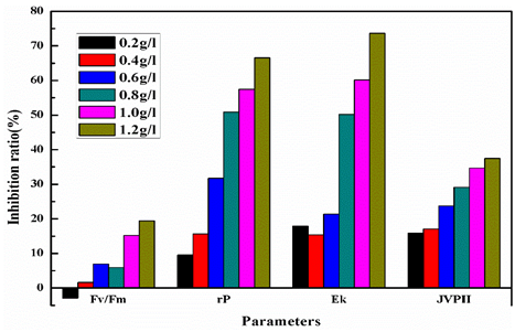 该项研究以叶绿素荧光为藻类光合作用过程探针,开展了苯酚急性毒性作用下的72小时与70分钟内蛋白核小球藻的光合抑制试验,研究了不同毒性强度下藻类各光合活性参数的响应规律。结果表明苯酚急性毒性对光合活性参数Fv/Fm、rP、α、Ek、JVPⅡ的抑制效应显著,5分钟内毒性效应就能达到稳定。研究结果为水质生物毒性检测、生态毒理学研究及毒性物质快速检测等提供了一种新方法。
