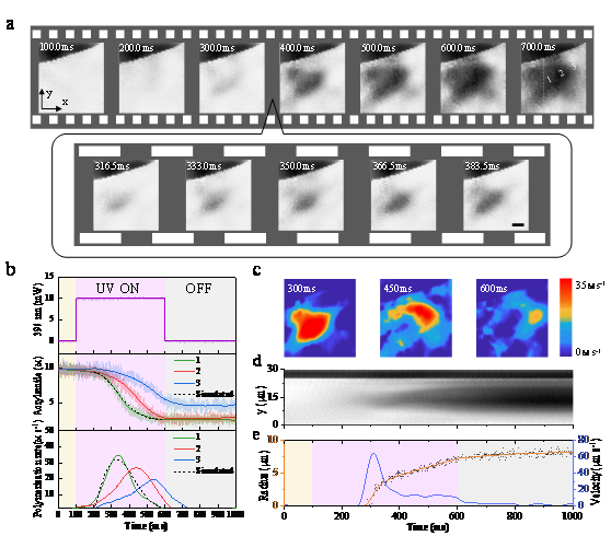 现代工业中聚合物的化学合成与大规模生产对于人类生活的方方面面都产生了巨大的影响,在各种条件下的聚合反应过程同样是化学和生物研究中的热点。对聚合反应过程中的化学分子的成分分析及其超快动力学的研究有助于进一步理解单体聚合反应的机理并改进聚合物网络的结构和性能。目前对聚合反应过程的研究,主要还在依赖流变、粘度、膨胀度等几种传统手段进行宏观测量。有限的化学分析方法,包括质谱,拉曼、核磁共振等,可以离线对采集的样品进行聚合度的检测与分析,但是这些技术检测速度慢,且不能在线实时提供化学检测及原位的化学成分的时空分布信息。由于单体的聚合过程和浓度变化快到毫秒,甚至微妙量级,还没有任何成像方法可以在分子水平上对聚合的化学动力学过程进行在线、原位和高速高分辨的显微成像。