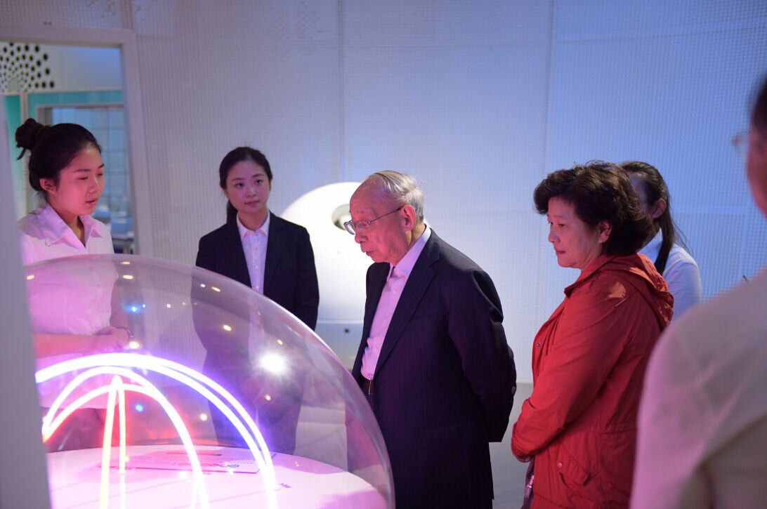 干福熹院士首先参观了我馆的七个常设展厅,简要了解了我馆的建馆历程和发展情况,并亲自体验了我馆的一些互动展项,同时针对我馆具体展厅、展项设置提出了合理化建议,包括及时调整和补充光学领域新增院士的展示、增设激光产生的原理、细化中国古代光学发展历史等相关内容的展品展项。
