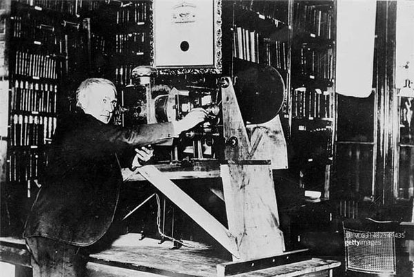 然而,爱迪生深知“留声视镜”只是一种机械装置,根本解决不了声音连贯的记录方式与视觉画面的线性记录方式间的矛盾。1894年,爱迪生找来迪克逊,开始研制电影放映机。经过半年多的努力,迪克逊研制成一种供实验用的活动电影放映机,即放映视镜。当年年底,爱迪生生平的第一次有声电影测试在新泽西工作室进行,影片名叫《迪克逊试验有声电影》,这是世界上第一部有声活动电影机的测试电影。