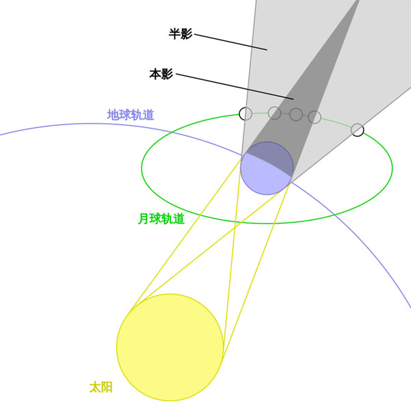 日食则是当月球位于太阳与地球之间,月球的阴影投向地球表面时产生的现象。因为月球的直径相对太阳很小,日全食的本影区极小,通常只有百余公里宽,因此地球上能观测到日全食的区域非常有限。