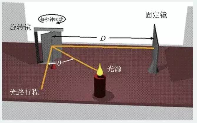 (图中D为旋转镜与固定镜之间的距离,θ为光的入射线与旋转镜之间的夹角)